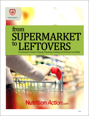 And here’s an easy solution for you. Order the ultimate guide for consumers on food safety! NutritionAction.com’s From Supermarket to Leftovers: A Consumer’s Guide to Buying, Preparing, Cooking and Storing Food Safely provides quick and easy tips for avoiding disease-causing microbes that can make you acutely ill within hours, days, or weeks of eating.