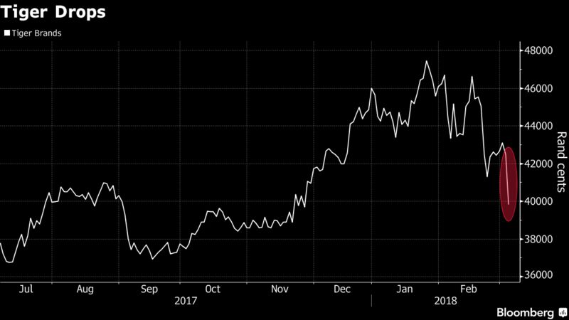 Tiger Brands dropped the most in more than two years after the company’s processed meat products were identified as a source of the listeriosis outbreak that’s killed 180 people.