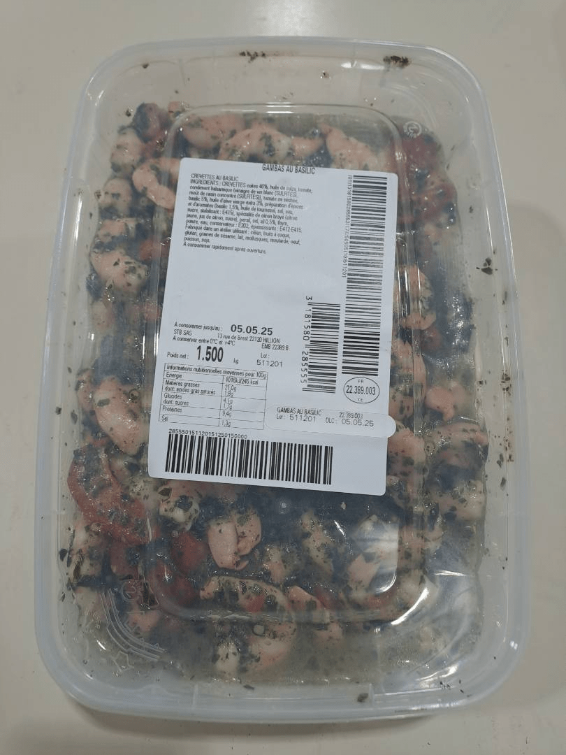 - Model names or part numbersPRAWN SALAD WITH BASIL 1.5K