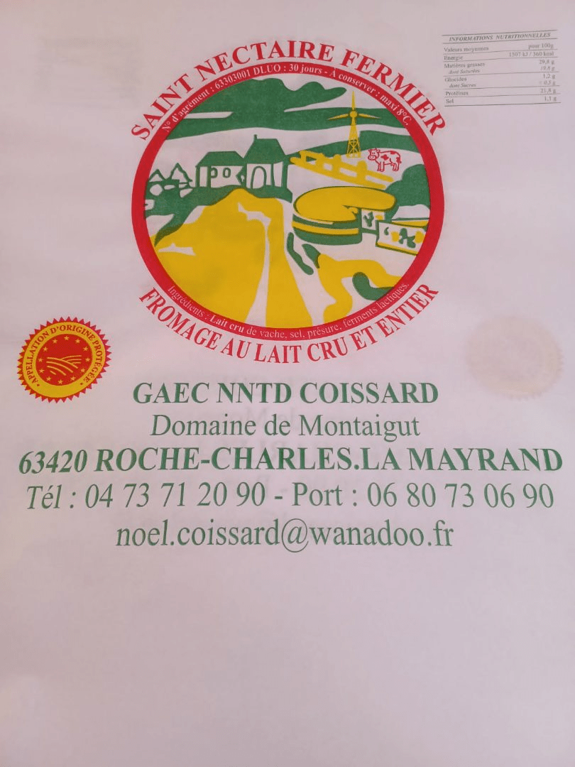 - Model names or part numbersSaint-Nectaire farmhouse with raw milk