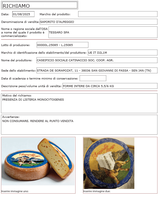 Reason for the recallPresence of ListeriaRisks to the consumerListeria monocytogenes (agent responsible for listeriosis) Conduct to be followed by the consumerDo not consume again Return the product to the point of sale Contact the point of sale Destroy the product Health recommendationsPeople who have consumed the “products” mentioned above and who have a fever, isolated or accompanied by headaches, and body aches, are invited to consult their doctor and report this consumption. Severe forms with neurological complications and maternal or fetal damage in pregnant women can also sometimes occur. Pregnant women as well as immunocompromised people and the elderly should be especially attentive to these symptoms. Listeriosis is a disease that can be serious and has an incubation period of up to eight weeks. Contact number0388553400Compensation arrangementsRepayment End date of the recall procedureSaturday, August 30, 2025
